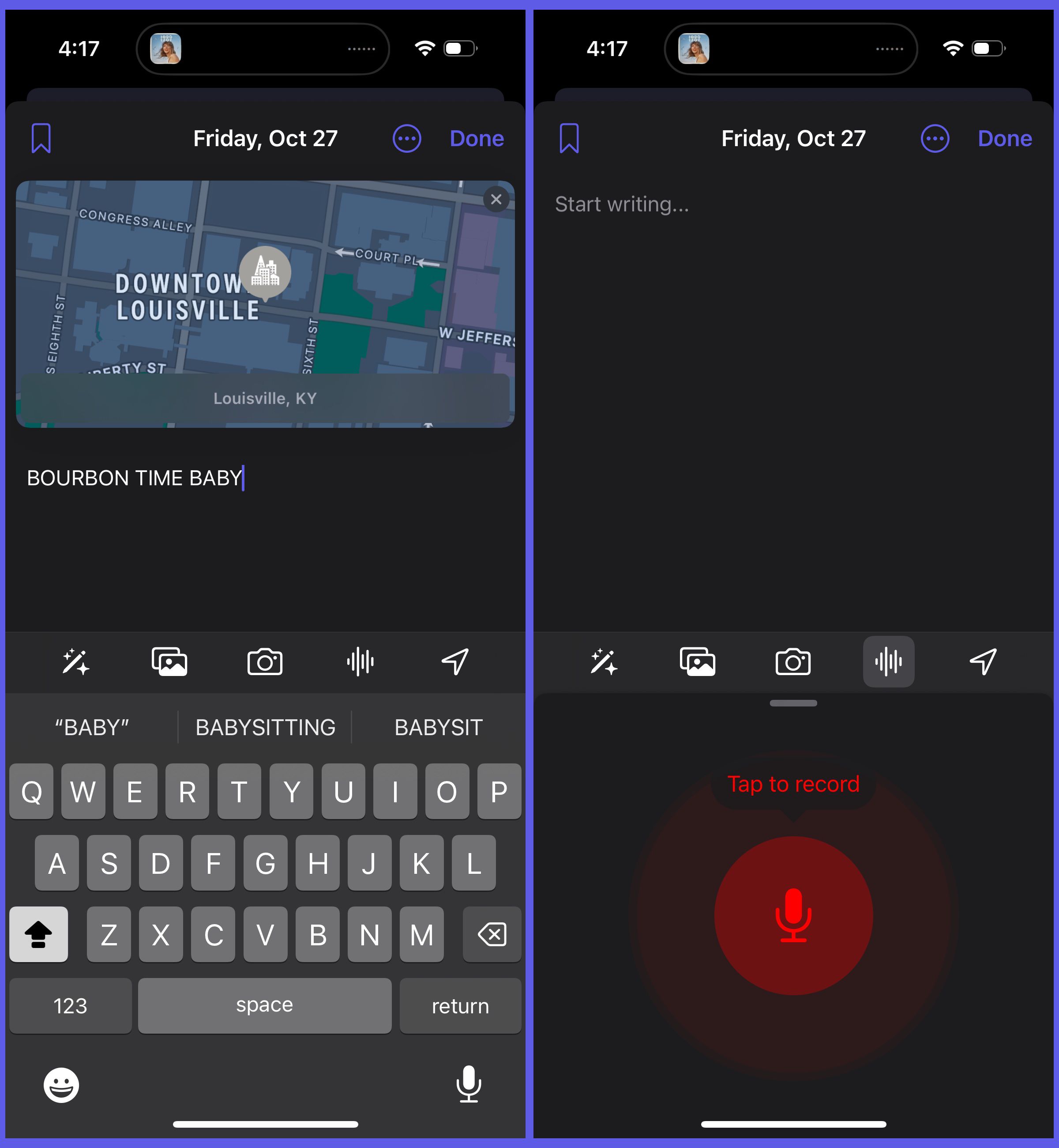This is a really intriguing idea, especially because Apple is making this tech — which Apple calls a “suggestions API” for Moments — available to other third-party journaling apps as well. All the machine learning and processing happens on your device, and the app you’re using only gets information about Moments once you pick one to add. (The only part of Journal that isn’t completely local is the iCloud backups, which are themselves encrypted.)