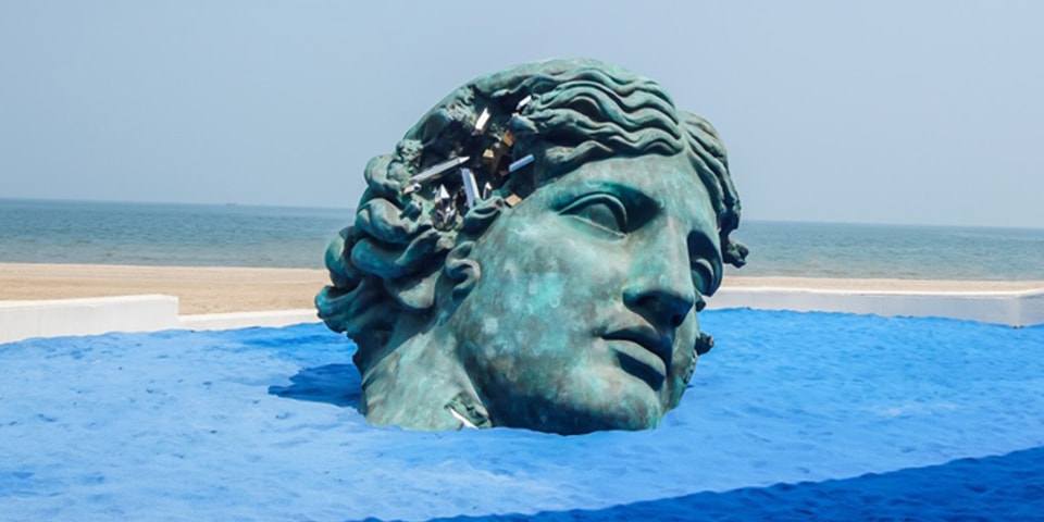 Amongst the works on display, the highlight of the show is perhaps Arsham’s largest sculpture to date, Unearthed Bronze Eroded Melpomene (2021), an impressive bust that is surrounded by vibrant blue sand and the backdrop of the ocean. “The artist wishes to bring to the audience a sense of surrealism. You can imagine that the body of the goddess is gradually sinking with the passage of time [and] finally collapses into the outdoor gallery,” said Duffy Du, UCCA Senior Exhibition Coordinator.