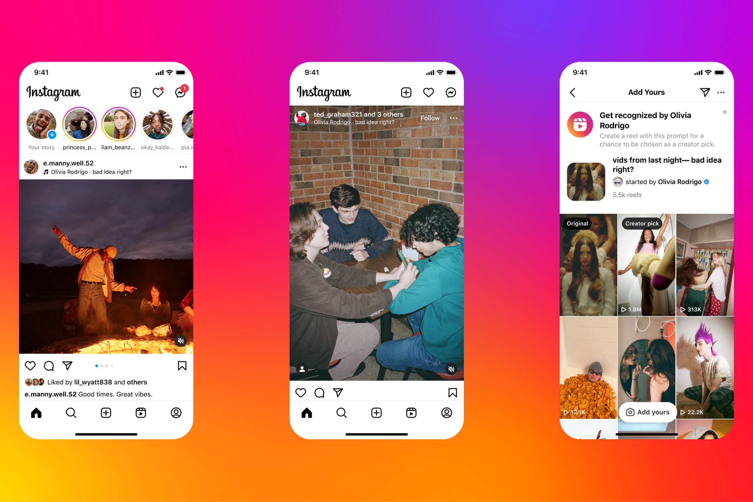 A new Instagram music feature allows users to add a song as a soundtrack to their carousel posts. First up: Olivia Rodrigo’s new song, “bad idea right?”