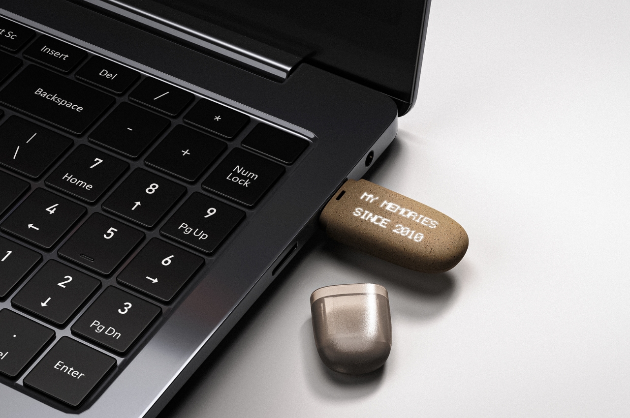 Named the Memory Capsule, this unique concept for a design challenge with Samsung looks like a regular USB flash drive on the surface but is in fact made from eco-friendly materials from old electronic devices.