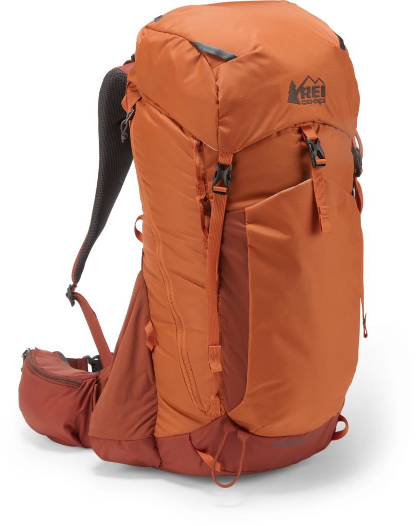 The REI Co-op Traverse 32 Pack – Men’s is slightly bigger but offers the same features. A padded harness and hipbelt give immediate, worn-in comfort while continuous padding from hipbelt to lumbar helps avoid hot spots and discomfort.