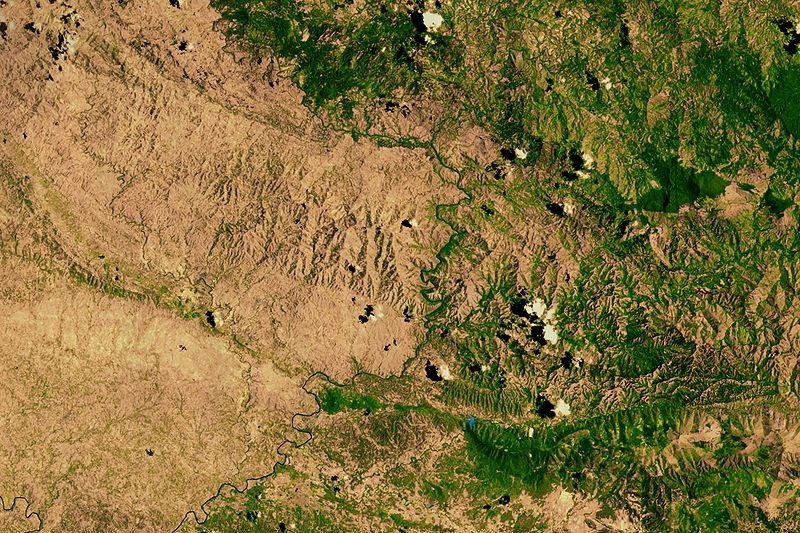 That bite mark is a bend in the Fly River, which strays to the west before levelling out into a straight line once again. It’s said that the anomaly is a result of headhunting (and not of the LinkedIn variety).