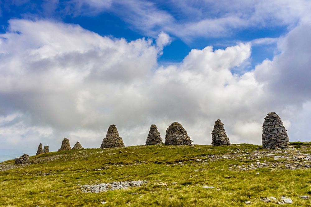 Aside from the pub and relentlessly striking views, the highlight of this walk is the Nine Standards Rigg. The line of cairns stands on the edge of the Hartley Fell escarpment. No one knows their purpose, but one theory suggests that the cairns were constructed by the Roman army to resemble troops from a distance.