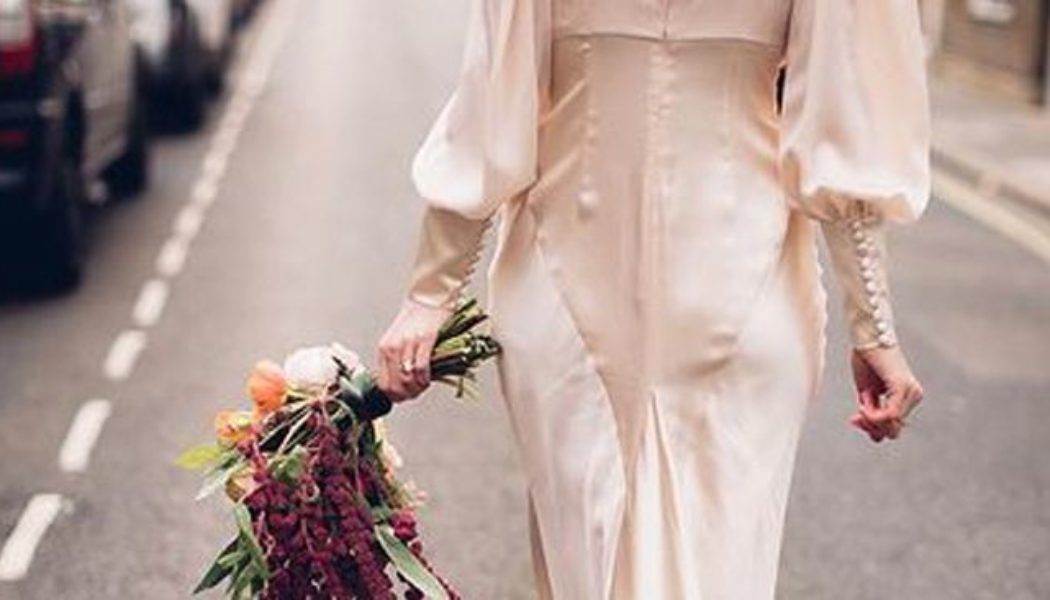 What makes a wedding dress suitable for autumn is ultimately down to your personal preference and what your overall wedding day looks like. Although I was an August bride, my wedding took place in my Scottish coastal hometown, so, erring on the side of caution, I chose a fitted dress to minimise the chill. Though it was sleeveless, I was prepared for what the enviable chilly downpour that ensued, thanks to a beautiful, ecru leather jacket I bought on a whim up just the week before. And I’m so glad I did, as I barely took to off.