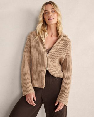 Merino Cashmere Double-Zip Cardigan