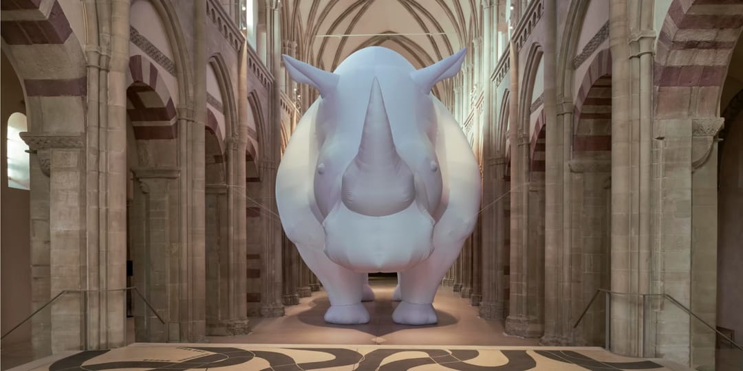 Kunstmuseum Magdeburg, the medieval German museum, is playing host to an unusual scene: a colossal Northern White rhinoceros standing between its Romanesque naves. At 17 meters wide and 9 meters tall the inflatable artwork is the latest installation by Berlin-based artist Itamar Gov, as part of The Rhinoceros in the Room, his ongoing solo exhibition running through July 5.