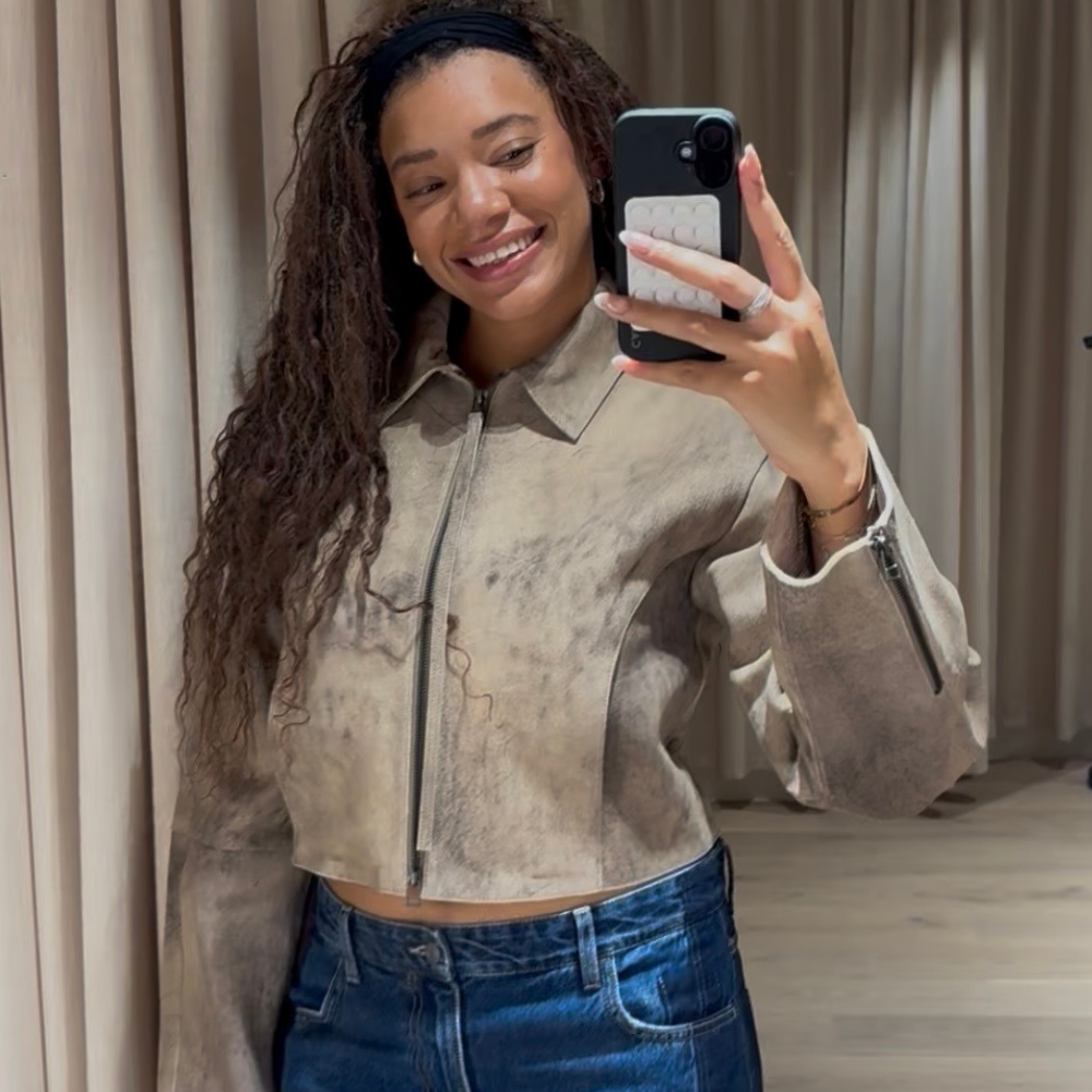 Style Notes: I can’t lie, alongside the suede jacket (more on that below), this set was, hands down, my favourite of the bunch. Let’s start with the top. I tried it in a size small and was pleasantly surprised by the amount of give. I would say I’m a true medium, so I’d recommend sizing down. Its asymmetric finish and subtle slit are thoughtful details that add a premium touch, making it look a lot more expensive than its £45 tag. I’m already imagining it styled over a thin knit turtleneck, with a mini skirt and boots in autumn and know it’ll look just as chic as it does paired with the matching jeans.