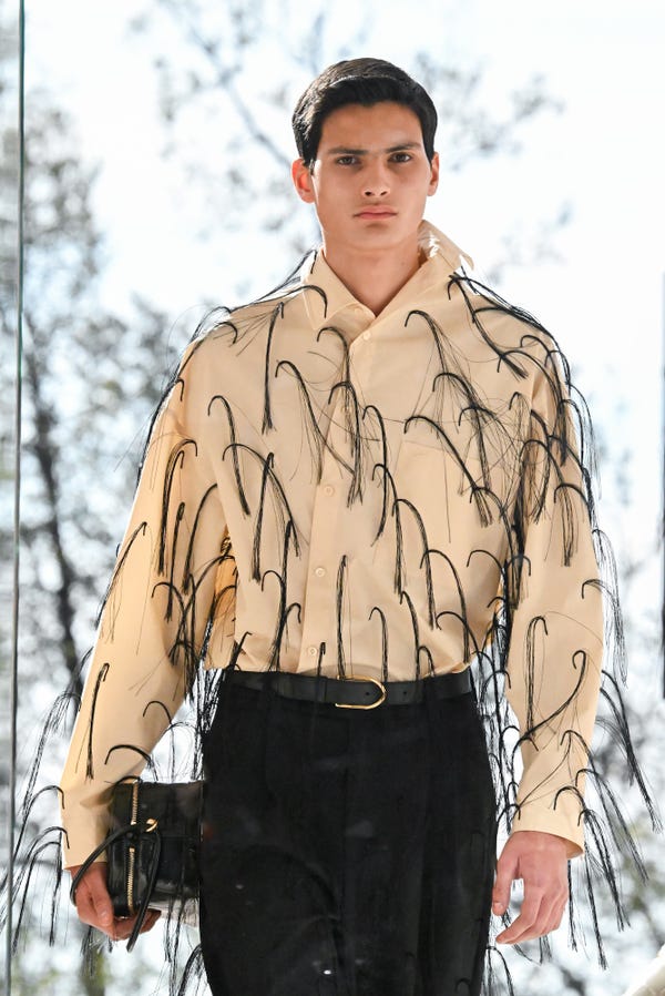 But according to Jacquemus, the new version of that look features classic pieces like summer dresses and button-up shirts decorated with sparse, frilly feathers.