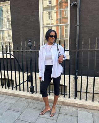 Almost every fashionista wears a version of this outfit in the spring, typically consisting of a button-down shirt, a T-shirt, and capris. But by swapping out sneakers or simple flats for embellished sandals featuring unique hardware or delicate crystals, you can transform the look into something intriguing and far from boring.