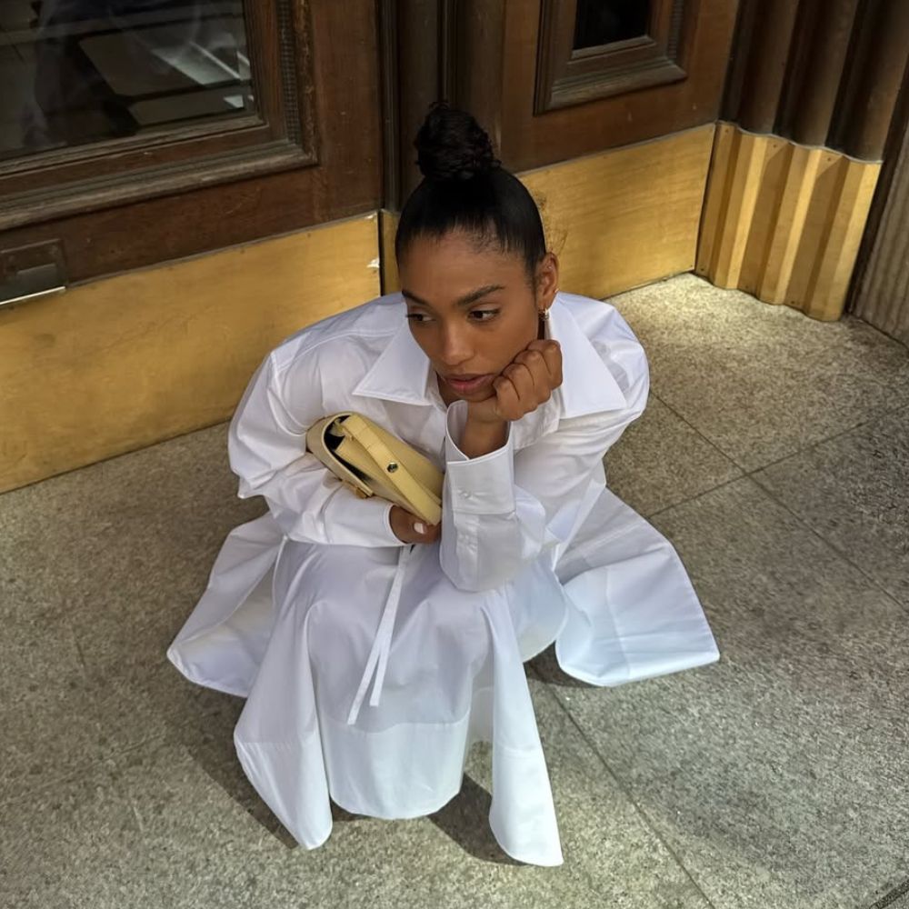 Style Notes: Nothing says summer like a white skirt. Clean (if you can keep yours that way) and extremely versatile, the white poplin skirt has been a fashion-person favourite for many years now. Whether you style it with a boxy tee, a button-up shirt or a pretty blouse, it adds an instant touch of classiness without feeling too fussy.