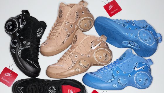 Boasting a paisley pattern on the base of the sneakers, the Supreme Flight 95’s also “features a suede and leather upper with printed pattern, rubber outsole with Zoom Air unit in heel, raised logo TPU windows at midsole, tongue and shank; mesh tongue with suede tongue panel and terry tongue lining; embroidered logos at toe and side; and embroidered graphic at woven heel loop.”