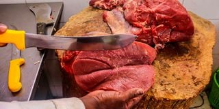 Meat being prepared for sale at Tip Top Butchery in Nairobi on October 23, 2024.