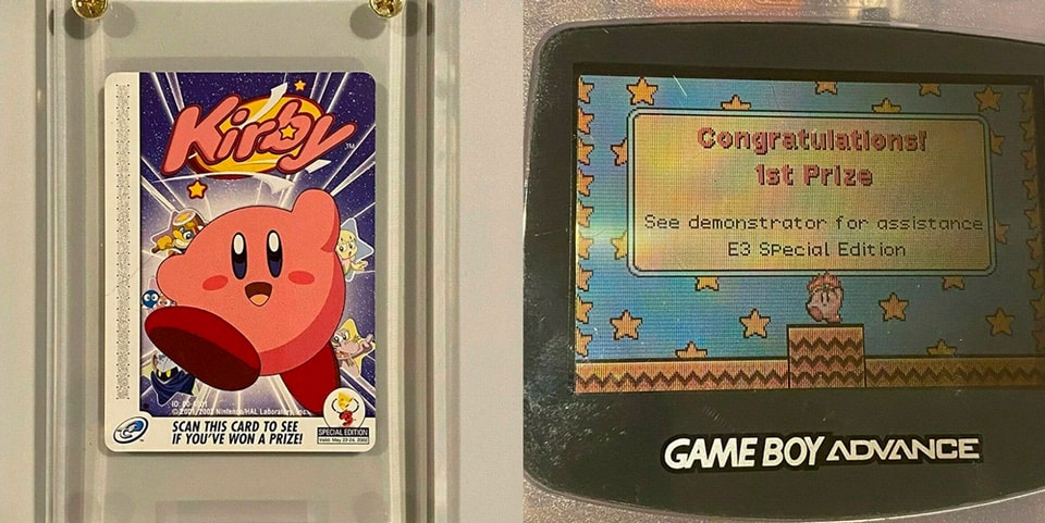 This card was part of Nintendo’s e-Reader series of collectible cards that could be read on the GameBoy Advance (GBA) for special items and unlocked features. This particular Kirby card was handed out at the 2002 E3 event where only 100 cards would garner a second-place prize and only 10 for the first-place prize. This card is extremely rare as all existing first-place cards were either redeemed or destroyed.