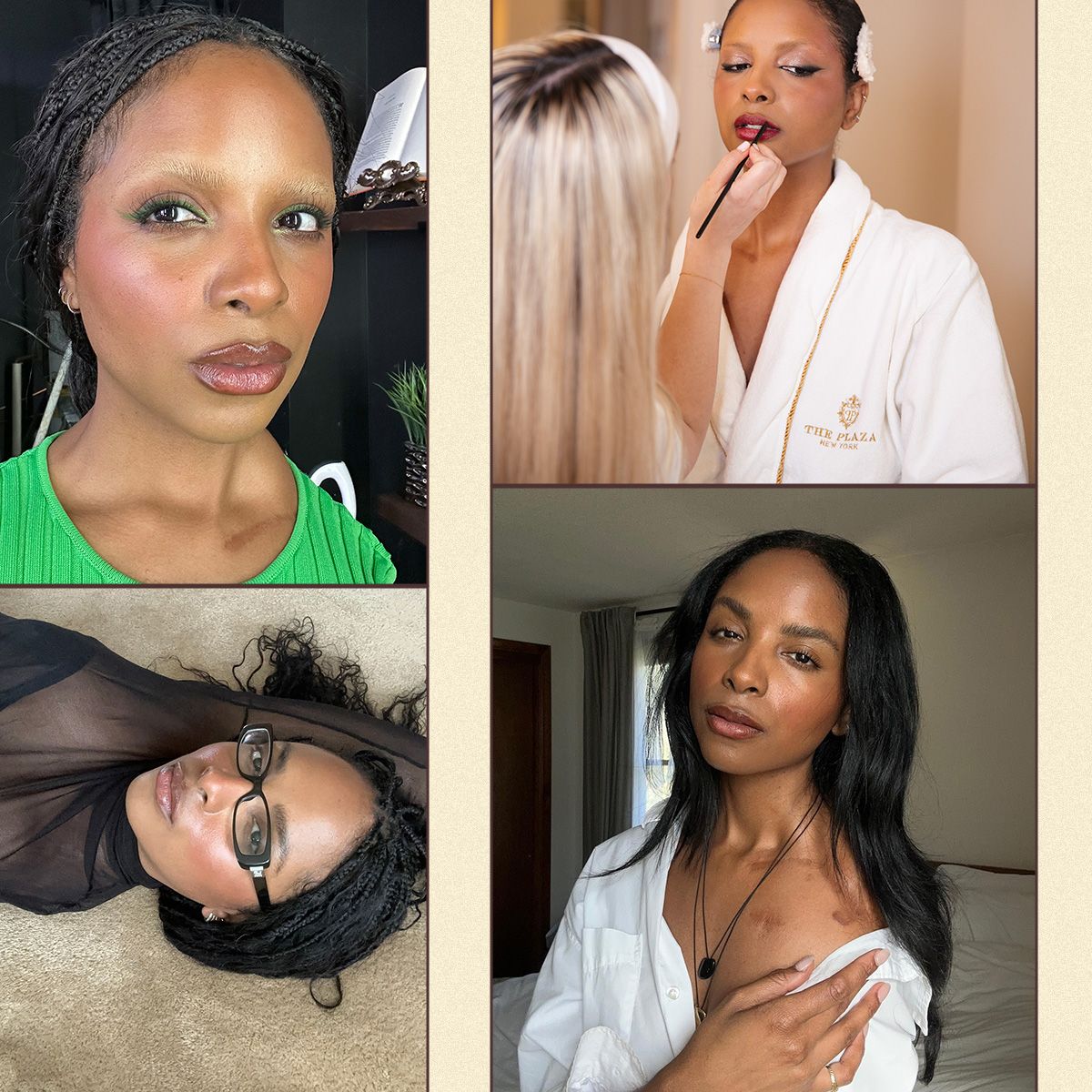 In high school, I would not leave the house without full concealer, foundation, blue eye shadow, mascara… My eyebrows were super filled in, [but] now, I like to play and experiment with looks a little bit more. As I’ve also come into my identity as a Black woman, a queer woman, a disabled woman, I’ve really leaned into ease and comfort as well as expression.