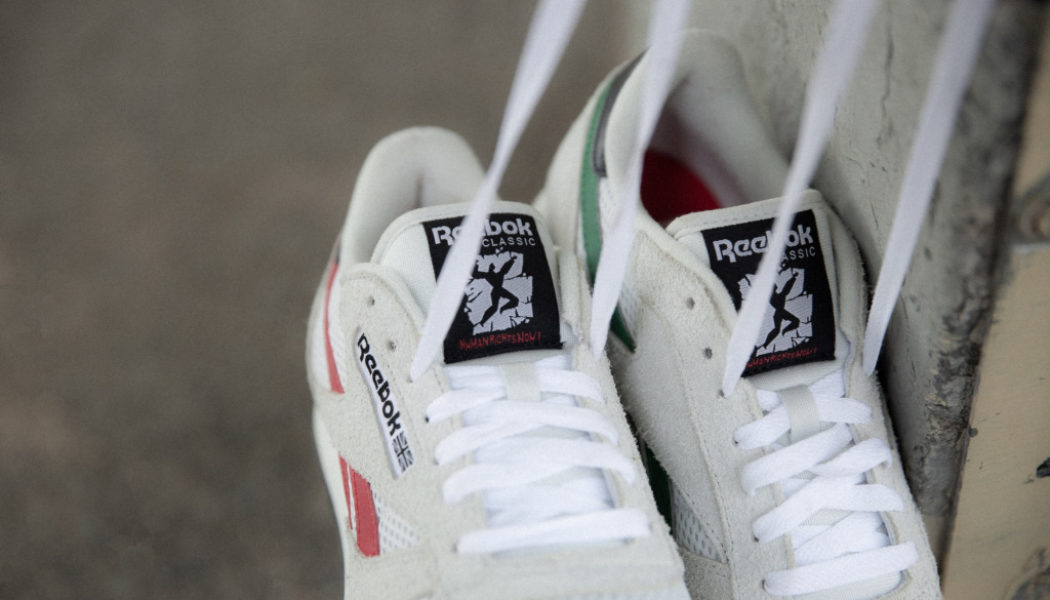Reeboks’s new “Product With A Purpose” initiative will feature some new takes on old classics such as the Club C 85, Classic Leather and Workout with hits green, red and black. The original Human Rights Now! manifesto is featured on the back of each shoe’s tongue: “The footwear also features the HRN manifesto on the backside of the tongue, ”Let your voice be heard, wear this product with pride. Not just because you support the fight for human right, but because you have those rights.”