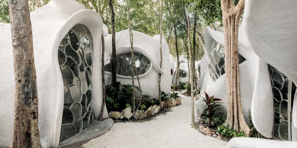 SFER IK, an interdisciplinary arts center in Uh May near Tulum, Mexico, harmoniously blends with its natural surroundings through biomorphic architecture. It’s part of the AZULIK Uh May ‘The City of Arts’ complex, housing artisan workshops, Roth Productions (a media company), Roth Architecture, Roth Design, and more. The complex is self-sufficient, with a cutting-edge facility called FabLab providing artists-in-residence access to advanced technologies, including Mat Lab, 3D printers, thermoforming machines, laser cutters, water jets, and a 6-axis robotic arm.