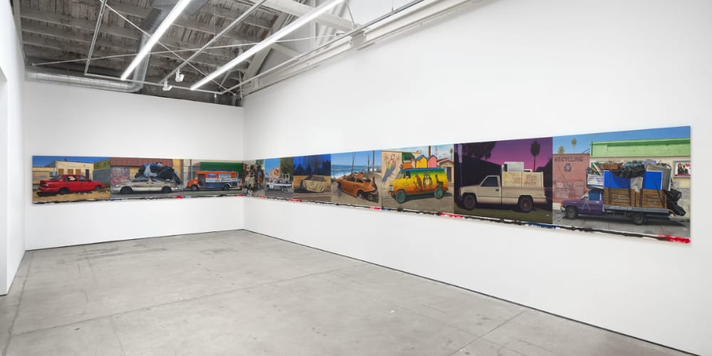 The show presents vehicles as markers of city life. Burned vans, tagged trucks, crowded RVs and idle food trucks stand in for the people who inhabit them. Although no figures appear, the presence of workers, commuters and residents is strongly felt. Gonzalez Jr. treats each vehicle as a portrait of survival, time and memory.