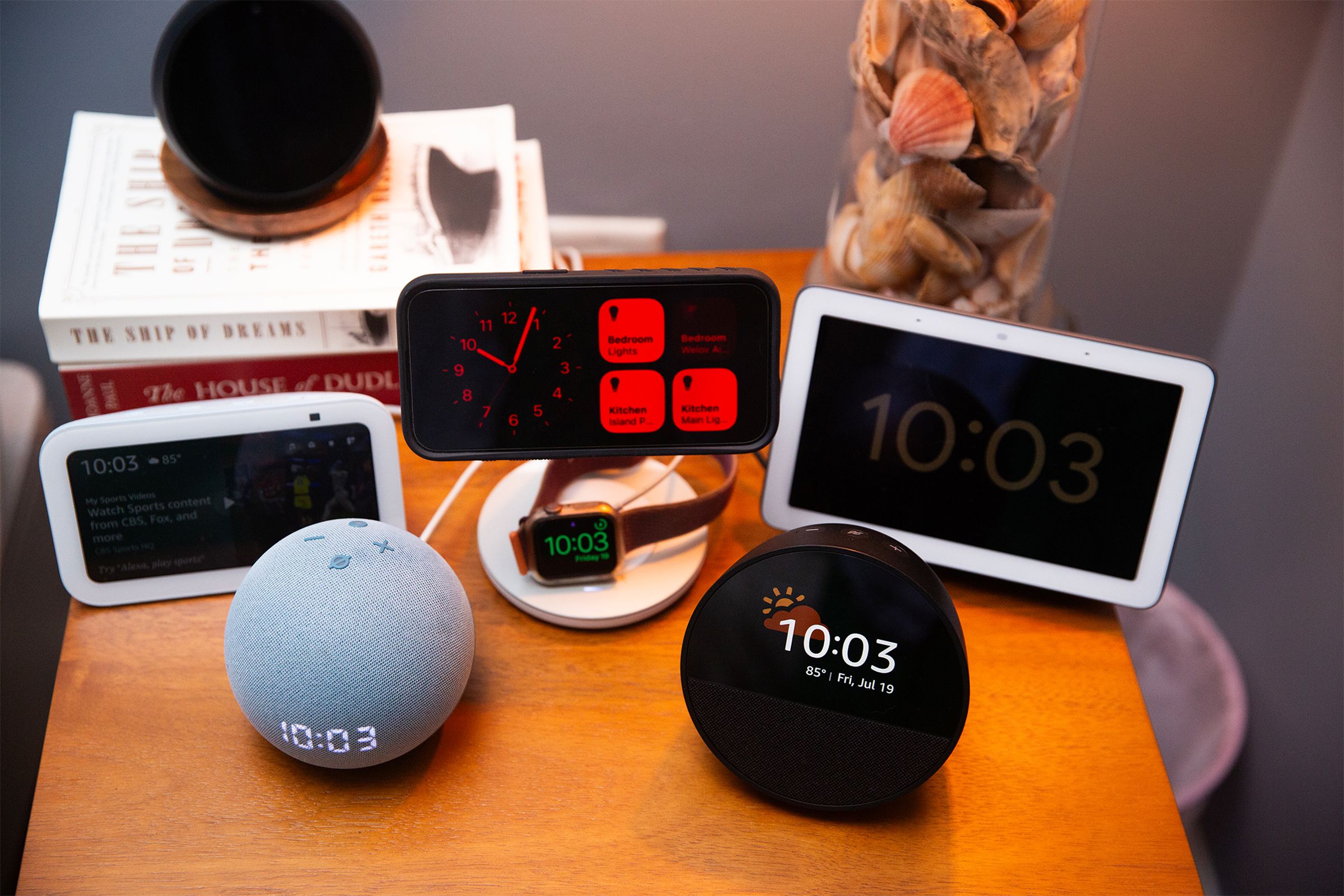 I have six Amazon Echo smart speakers in my house, and I’ve tested more, but my favorite is the Echo Dot with Clock. I love how the fabric-covered LED dot matrix display makes time unobtrusively accessible, beaming its gentle white light from my dresser across my blackout-curtained dark bedroom. (It definitely beats asking Alexa the time.)