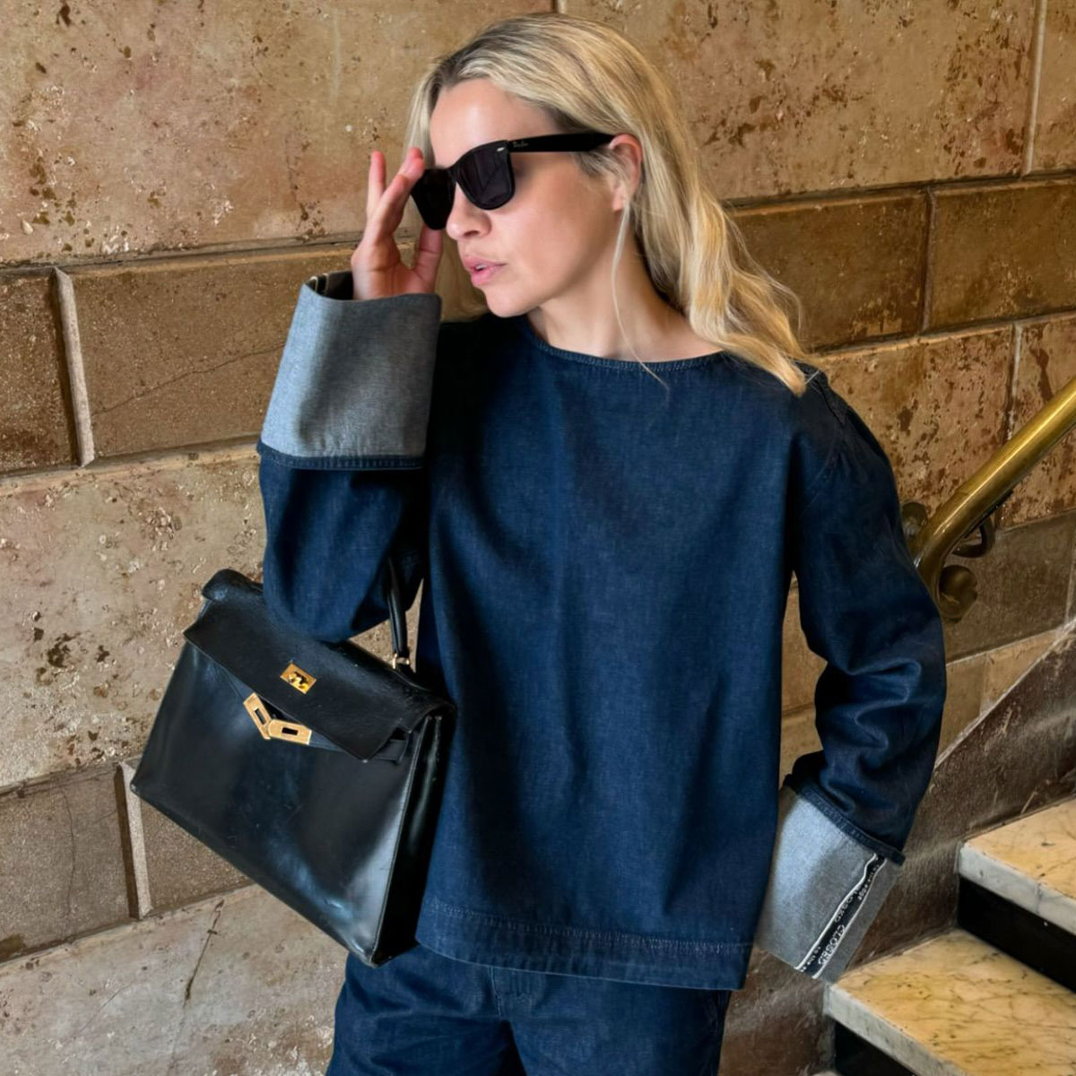 Linda Tol chose Swedish brand Rodebjer for her denim-on-denim look.