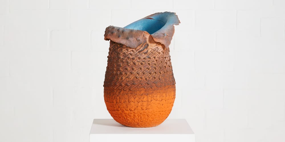 Punctuated with knobs and scores, the artist joins Xhosa practices of scarification with structural collapse, a metaphor for resilience in the face of personal and collective grief. Created in the wake of his brothers’ deaths, Dyalvane looked to clay to process emotions. ‘There was something to draw from that first moment of collapse. After that, I began to create an intentional accident — and that’s not possible,” he tells Designboom. “The way that I was tearing them and moving them, it was me expressing the grief that I was feeling. So intentionally, I had them cracked at the bottom.”