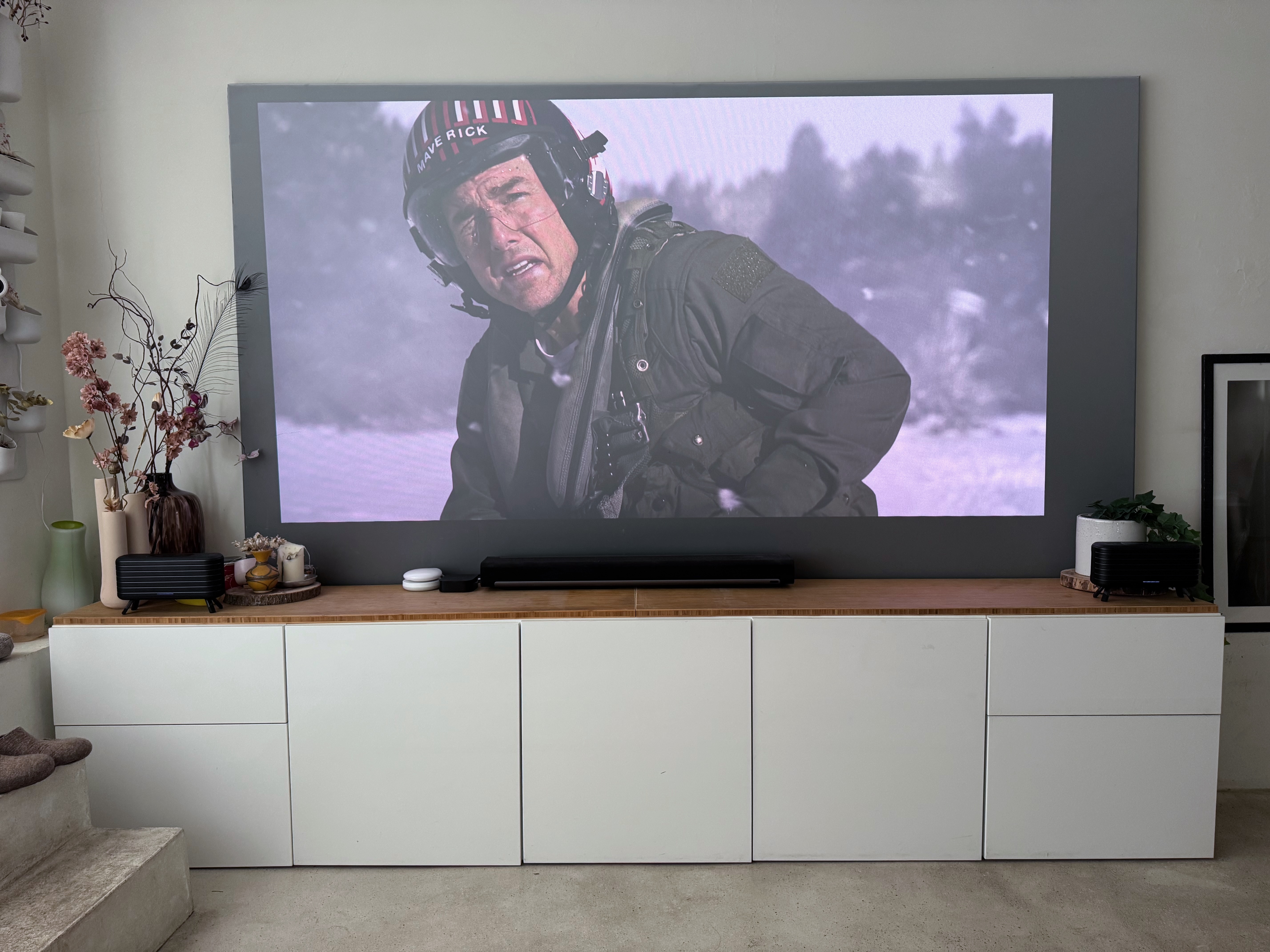 In 7.1.4 mode movie mode, with all four speakers detached, placed in the four corners of the room, and uh, Flexwaved, the sound rivaled my own 5.1 Sonos system built around a soundbar, subwoofer, and two rear satellites.