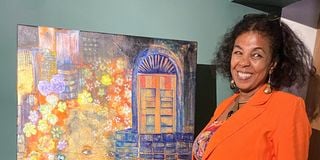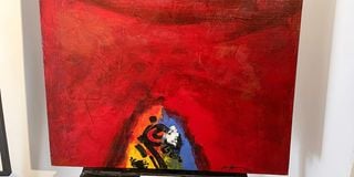 Omayma Gutabi’s untitled painting at Noir Gallery on April 15, 2024, during the ‘Art for Aid’ exhibition in support of Sudanese people suffering since the civil war started one year ago.