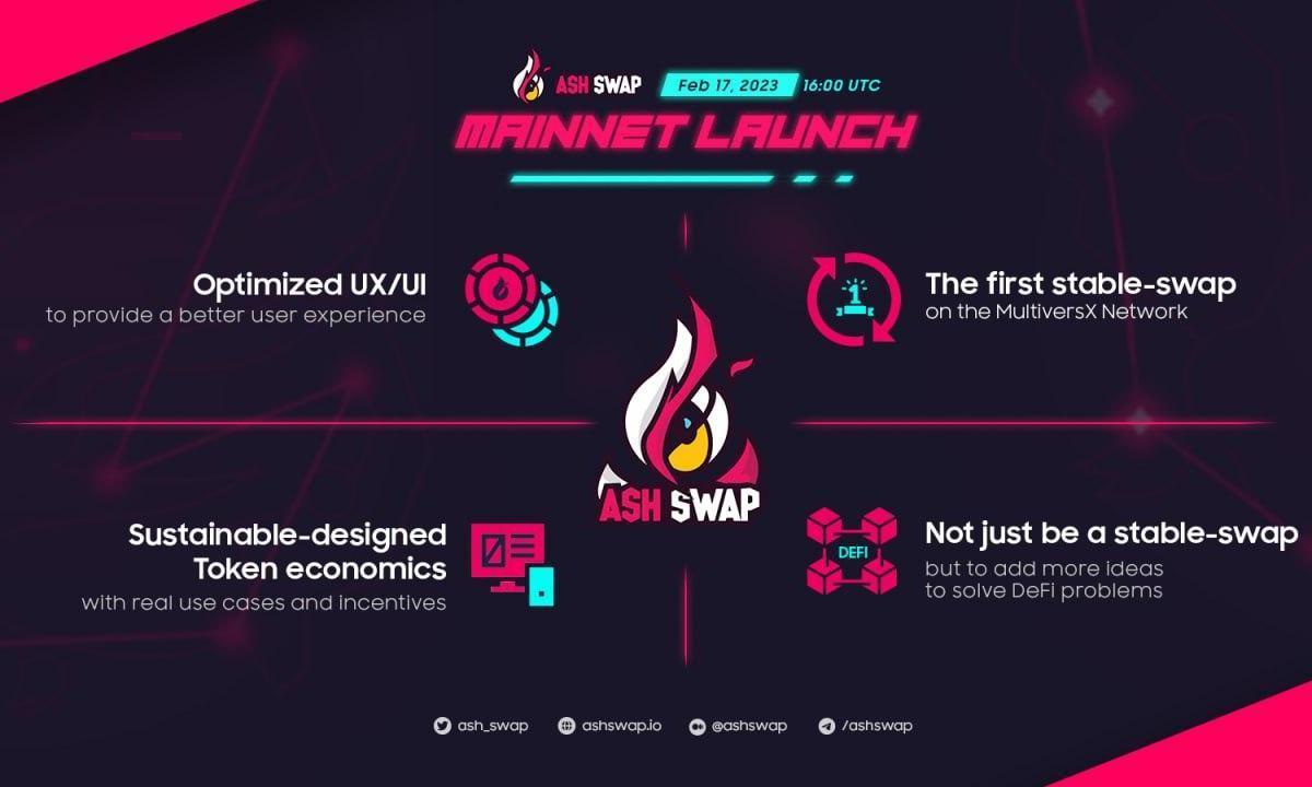 AshSwap, the first stable-swap DEX on the MultiversX blockchain (previously Elrond Network), is officially launching on the MultiversX mainnet on February 17. The DEX will seamlessly bridge critical DeFi functions and provide tighter spreads with a fraction of the liquidity on MultiversX.