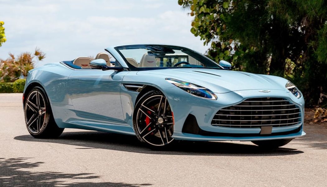 Aston Martin has revealed a bespoke DB12 Volante “Palm Beach Edition,” created through its in-house Q by Aston Martin division in partnership with Aston Martin Palm Beach. This one-of-a-kind open-top Super Tourer showcases British craftsmanship blended with South Florida flair, featuring an exclusive Frosted Glass Blue exterior. The hand-sprayed paint contains glass flakes, giving it a distinctive shimmer that evokes the coastal sun. A Club Sport White pinstripe runs along the splitters, sills and bumpers, accentuating its athletic stance, while gloss jet black diamond-turned wheels complete the look.