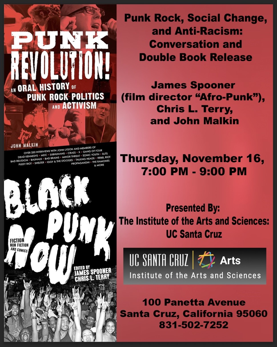 Malkin had interviewed Spooner and Terry for his radio show, which will air on KZSC the day of the event. At the institute, the three will be discussing social change and anti-racism as they pertain to the larger history of punk rock.