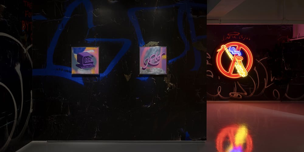 The paintings in Quaquaversal explore “Street Hieroglyphics” and corporate logos, oscillating between mechanical precision and human gesture. With vibrant colors and industrial-grade materials, Erizku critiques the political and social undertones of these symbols.