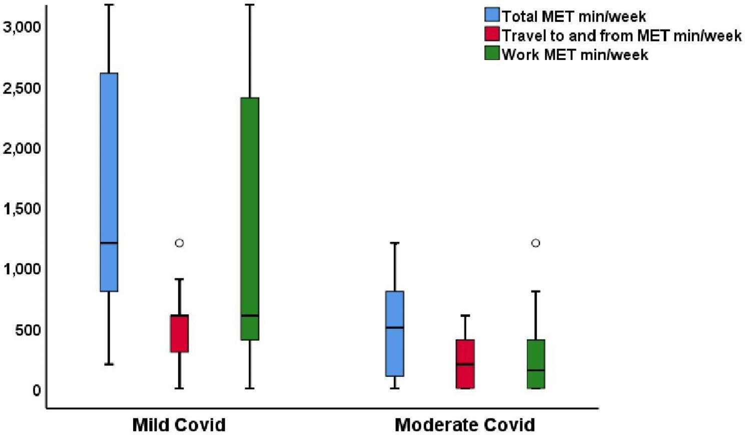 A previous study involving 206 COVID-19 patients found that: patients with lower METs min/week not only developed a more severe form of the disease, but also demonstrated a statistically significant relationship between the duration of signs and symptoms and level of moderate to vigorous physical activity [26].