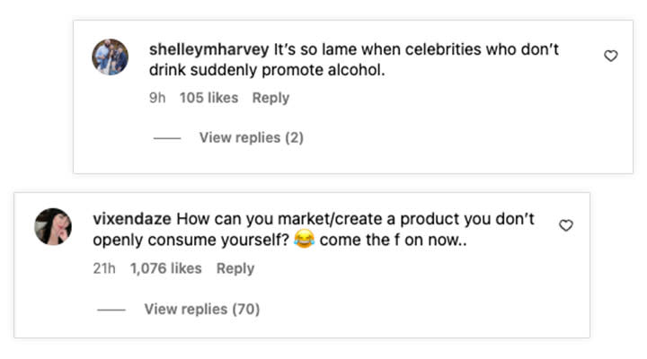 Another chimed in, commenting: “What a confusing way to promote your alcohol, by saying drinking isn’t your thing.” One other replied: “It’s so lame when celebrities who don’t drink suddenly promote alcohol.”