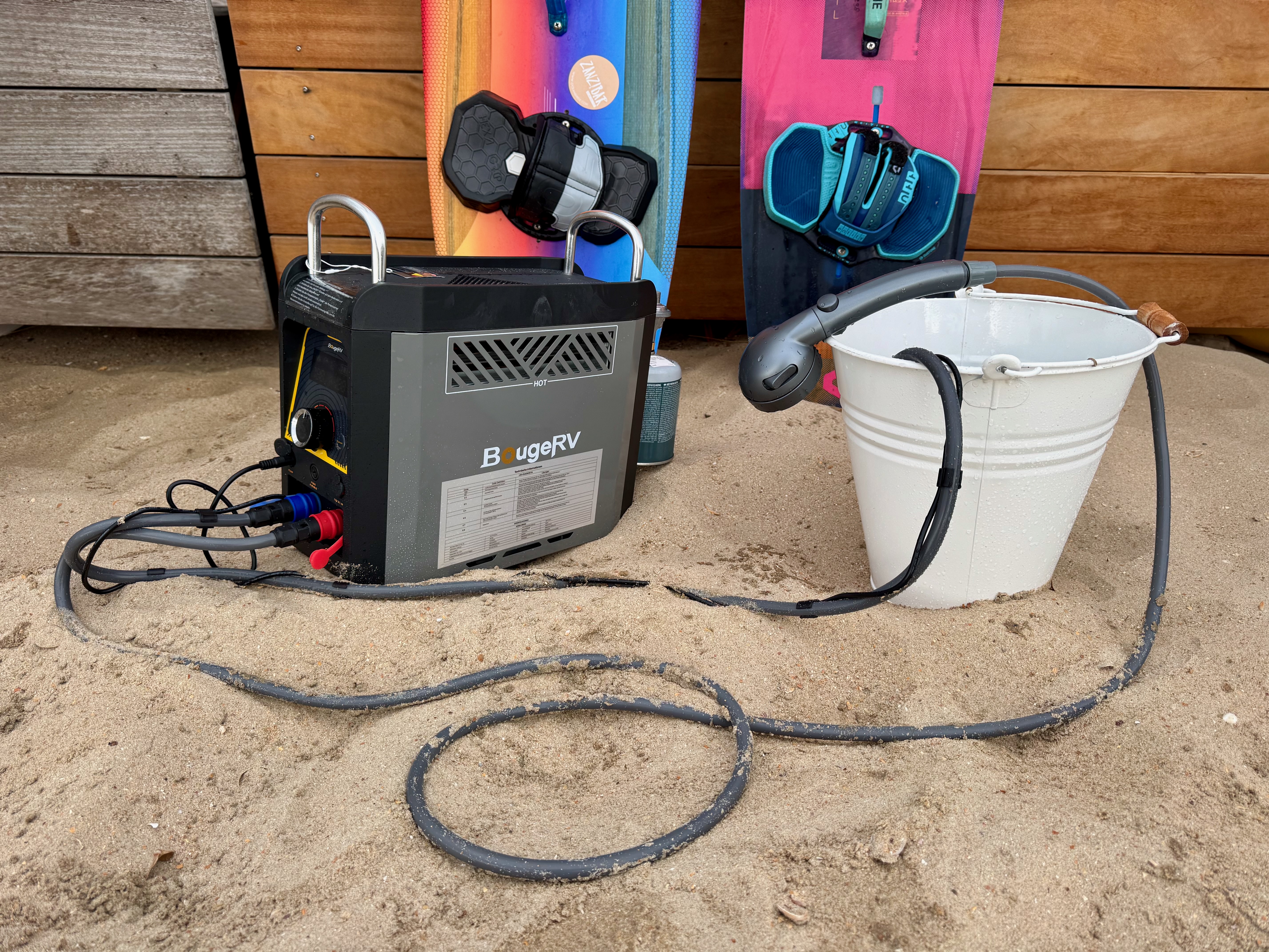 I’m impressed by BougeRV’s water heater, but I’m a little concerned about its durability over time. After using it on the beach on a windy day, I ran into trouble once I returned inside: the heater didn’t heat and the water was reduced to a trickle out of the showerhead. It’s possible that some sediment trapped in the lines reduced the flow rate below the 1.2L/min required for ignition. Nevertheless, the issue was resolved after a few minutes of fiddling with the hoses and filters, and turning the unit on and off again.