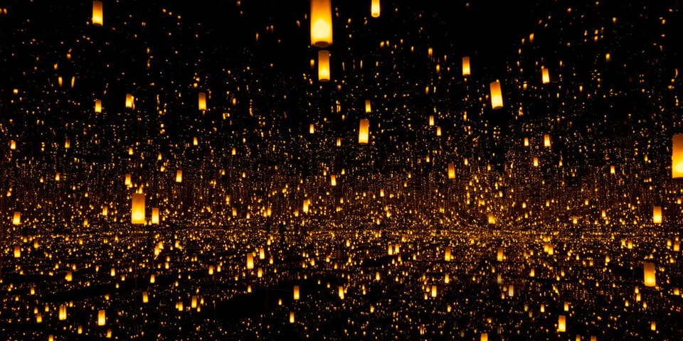 Aptly named, Galeria Yayoi Kusama will play host to several ethereal installations, including an Infinity Room entitled Aftermath of Obliteration of Eternity (2009), which invites visitors into a deceptively simple space made of metal, glass and wood, that casts visitors’ reflections across a sea of lights. Far less extravagant, but similarly luminescent, Kusama’s I’m Here, But Nothing (2000) is also on view and features a living room with modest wood furnishings and sticker polka dots that are made to pop through a black light.