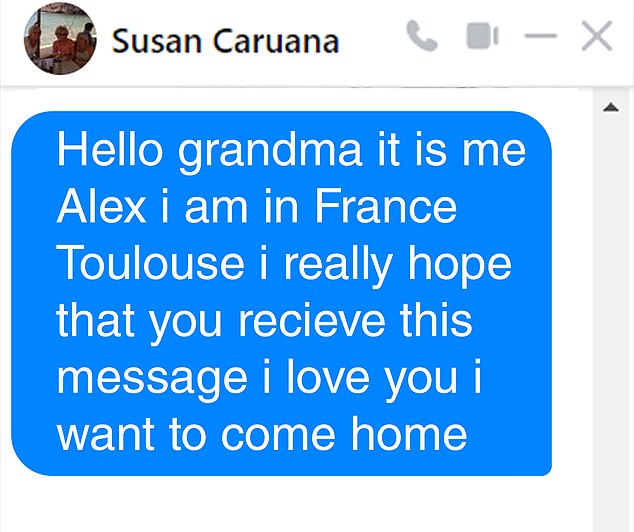 Alex said he had been trekking across the French Pyrenees for four days before Fabien, 26, spotted him – and one of the first things Alex did was message his grandmother from the student’s phone to say ‘I love you, I want to come home’.