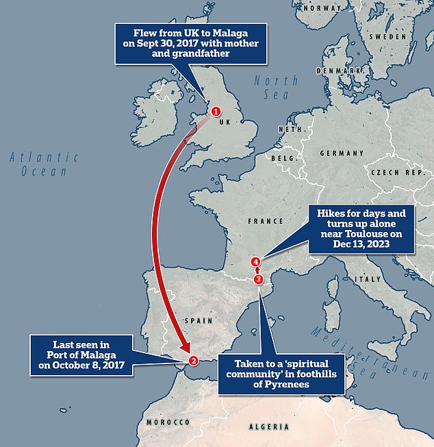 At the time of Alex’s disappearance six years ago, Greater Manchester Police said ‘extensive enquiries’ led them to believe that Alex, his mother and grandfather left Benahavis and may have tried to head to Melilla in Morocco from the Port of Malaga.