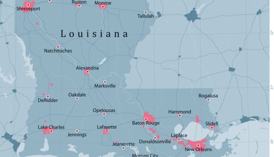 Louisiana US State Vector Road Map Grey