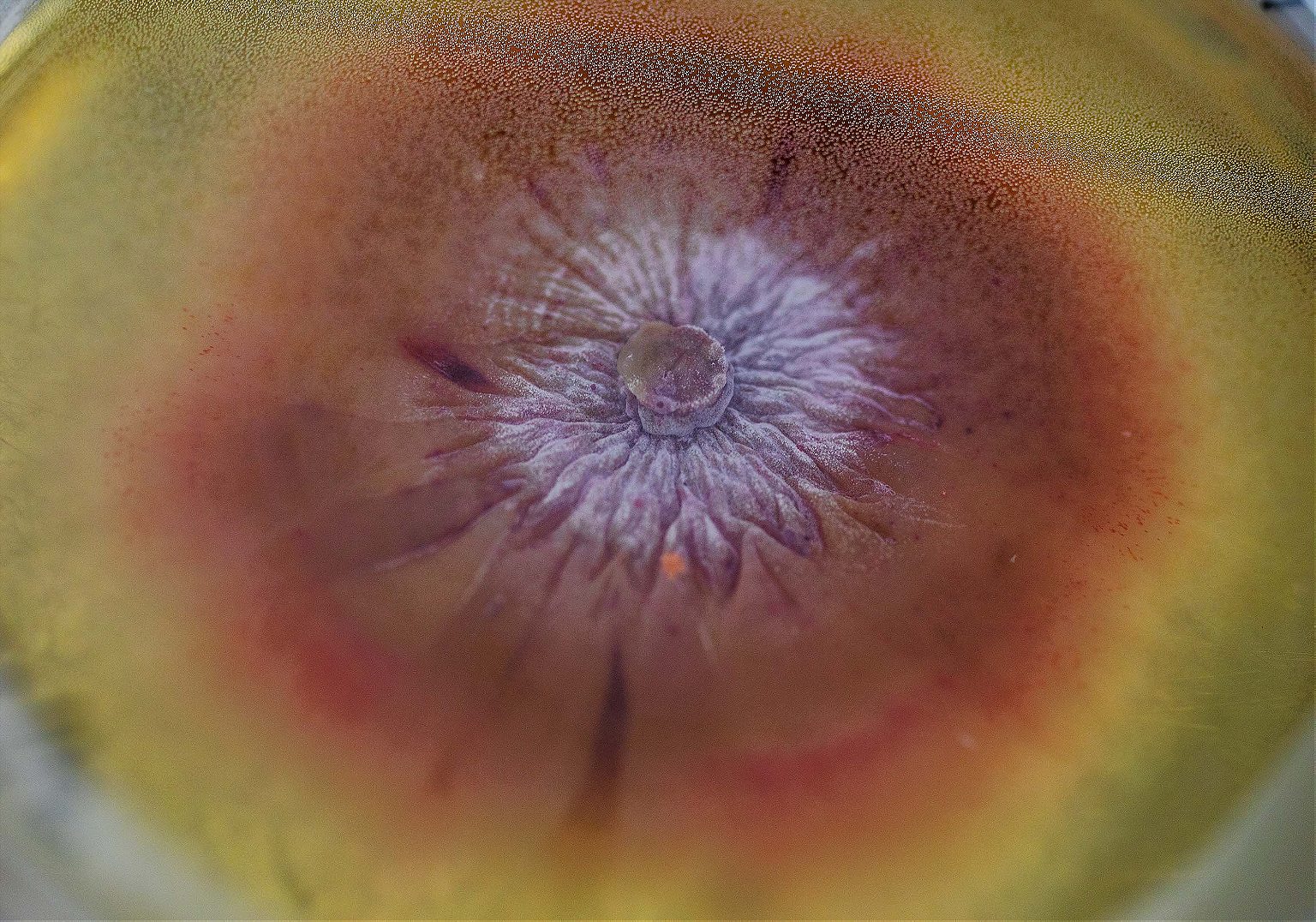 The harvested fungi—found within plant tissues—are displayed in petri dishes in Loam’s small on-site lab. Each is carefully analyzed to determine which soil types and host species it could pair with, and to ensure only beneficial microbes from indigenous species enter the soil. They range from oily white to brilliant strands of pink, and there’s one that looks distinctly like a slice of moldy orange, its rind fuzzy and black.