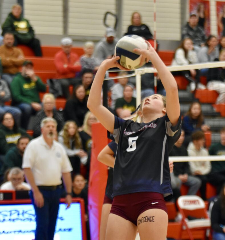 Chautauqua Lake’s Karagan Fairbank sets a pass in Friday’s Far West Regional.