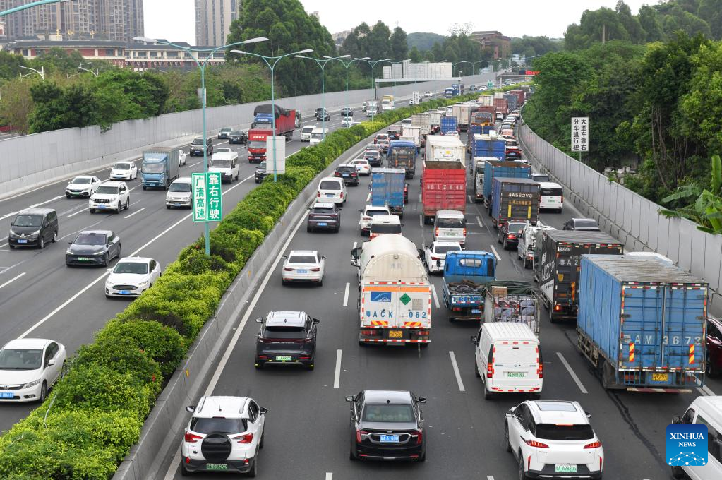 Heavy traffic is pictured on the expressway surrounding the city of Guangzhou, south China’s Guangdong Province, April 29, 2023. /Xinhua