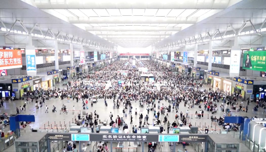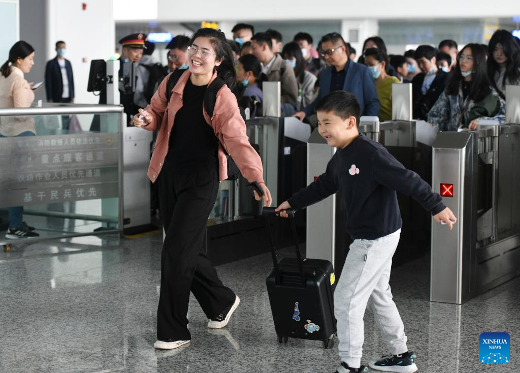 Passengers wait to board trains at Nanning East Railway Station in Nanning, south China’s Guangxi Zhuang Autonomous Region, April 29, 2023. /Xinhua