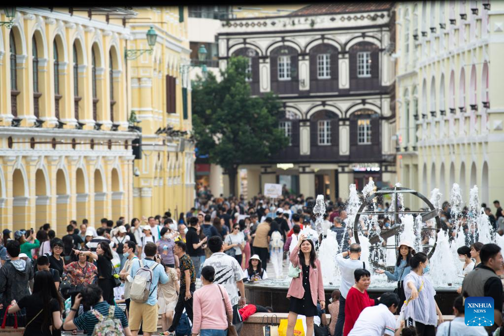Tourists visit the Senado Square in Macao, south China, April 29, 2023. /Xinhua