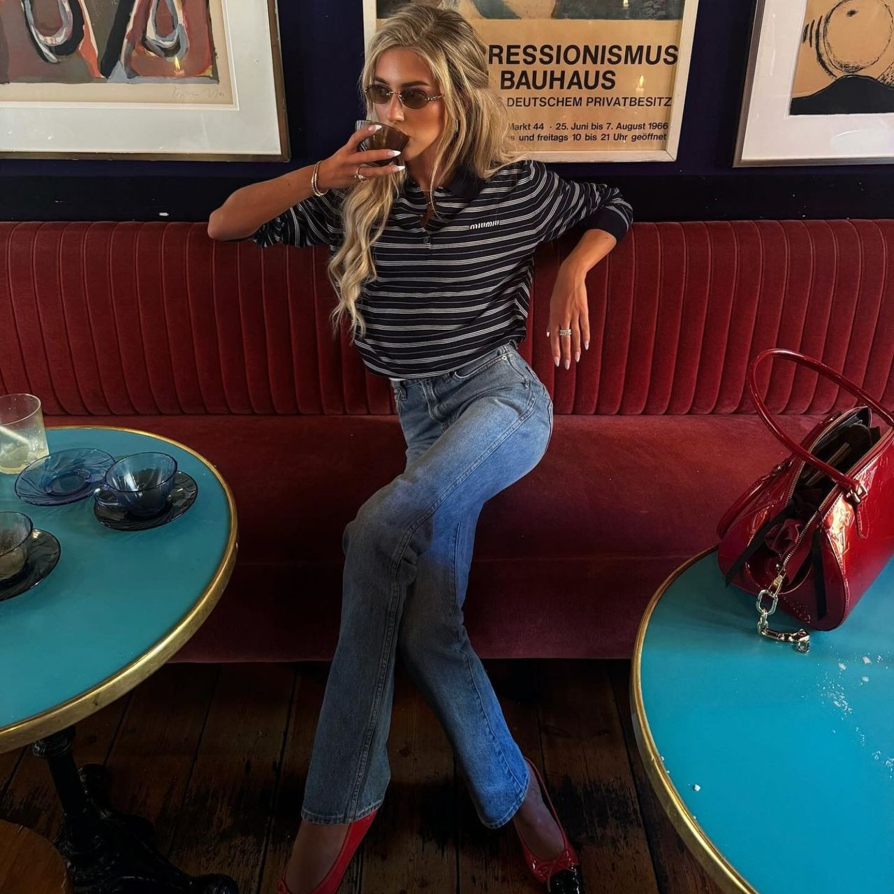 3. Rugby Shirt + Cigarette Jeans + Bowling Bag