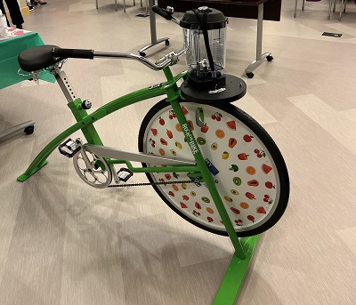 Community Health & Well-being team members were also on hand to demonstrate how simple it is to prepare a quinoa tabbouleh salad with chickpeas. Audience participation was welcome for attendees who wished to ride the stationary bicycle that blends a healthy smoothie as you pedal. It’s a cardio workout, followed by a refreshing, juicy snack.