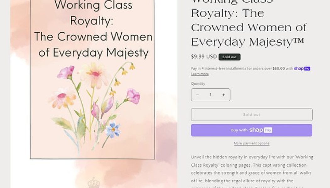 The book, which retails for $9.99 on the website, says the book will ‘unveil the hidden royalty in everyday life with our Working Class Royalty coloring pages.’