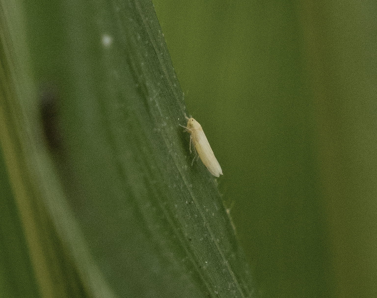 The corn leafhopper transmits four pathogens causing the corn stunt disease, which results in visibly shorter plants, leaves with white streaks and red edges, and smaller ears with almost no grains. The leafhopper also lays eggs in the plant’s bud, leaving open stomata that expose it to drying.