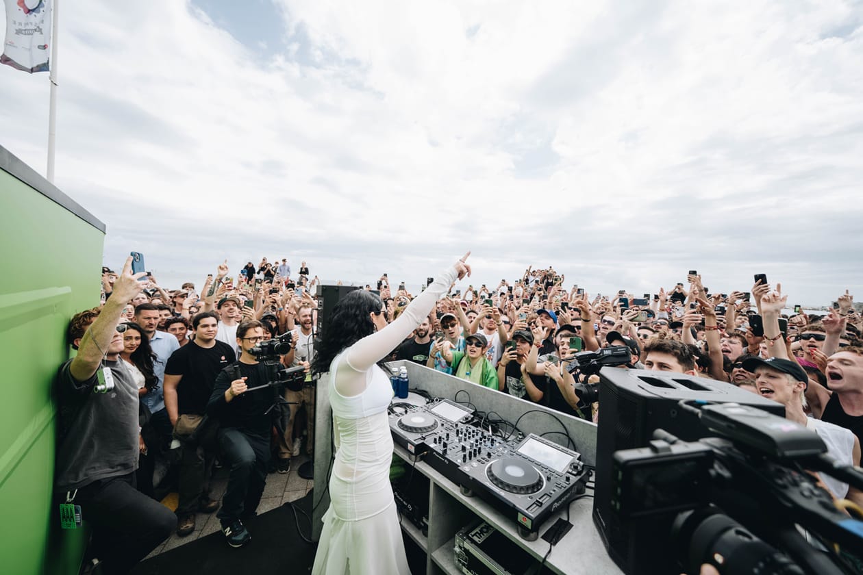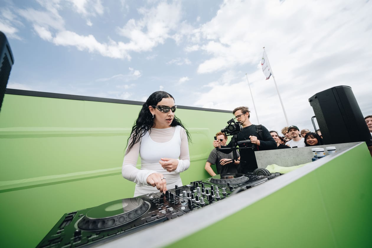 Making a bold statement, the singer pulled up to the beach event in Cupra’s Born VZ, a performance-built, 100% electric automotive with a dynamic silhouette that appeared to naturally suit her futuristic look. Against a vibrant green backdrop, hinting at her new album cover, she went on to play a series of her own tracks remixed confidently with heavy dance beats. Like Cupra’s ethos, her set proved to be both rebellious and unconventional, leaving fans hungry for more.