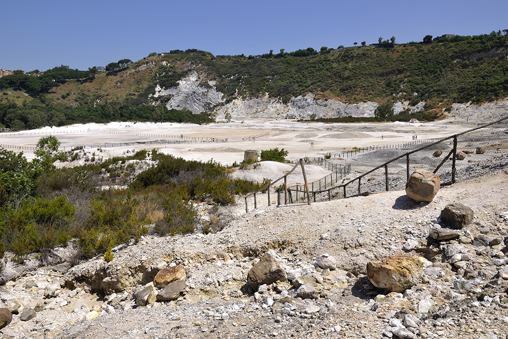 Located just west of Naples, the Campi Flegrei is a sprawling volcanic caldera that is one of the most geologically complex areas in the world. While dormant, it remains an active site of geothermal activity, with fumaroles, hot springs and bradyseismic phenomena (the gradual rising and sinking of the ground).
