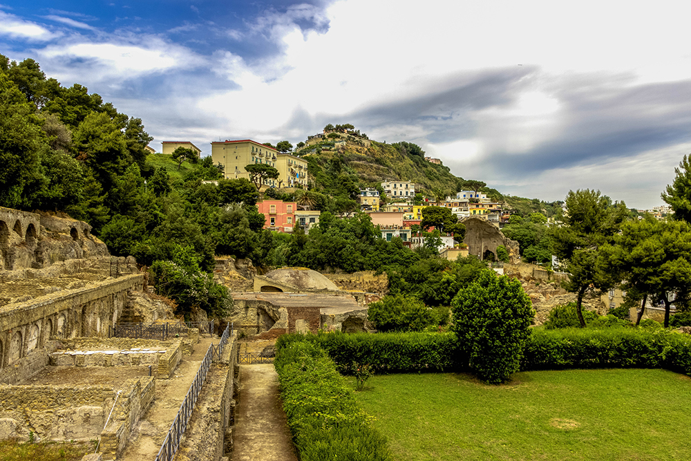 Nearby, the ancient Roman town of Baia offers fascinating ruins of thermal baths, villas and temples, some of which are now submerged underwater due to the volcanic activity.
