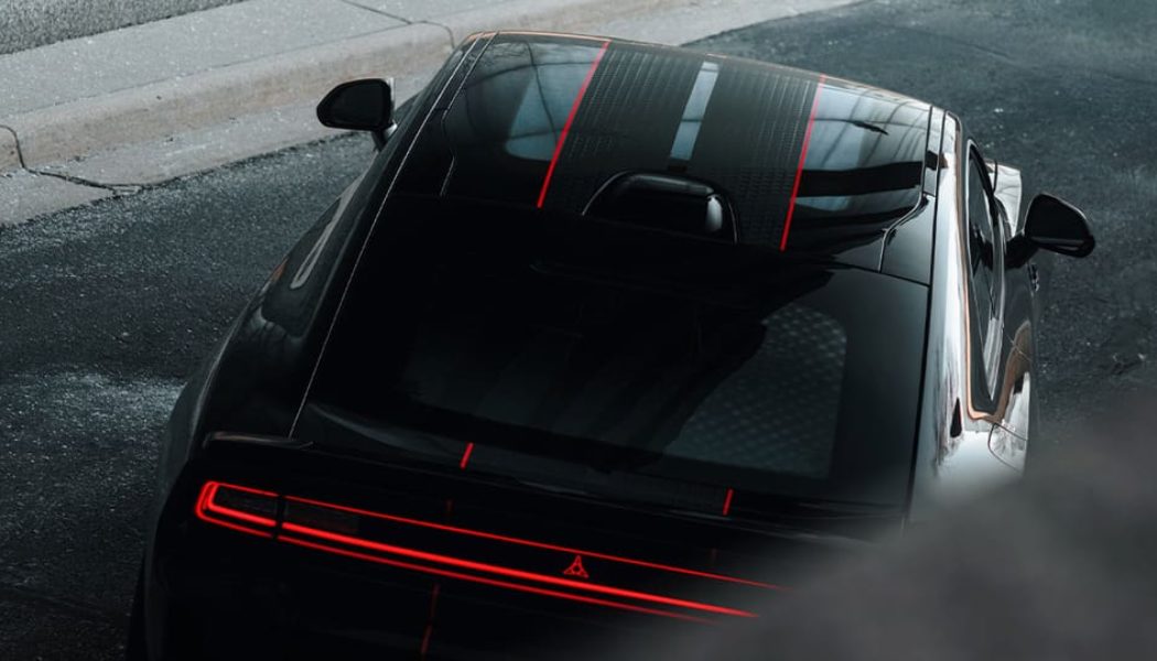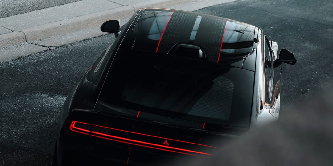 Among the standouts was a Charger Daytona outfitted with dual matte black Fratzog stripes, trimmed in red and filled with a repeating Fratzog logo pattern — a nod to the brand’s electrified future. The design, compatible with both glass and steel roofs, allows passengers to see the pattern from inside the cabin.
